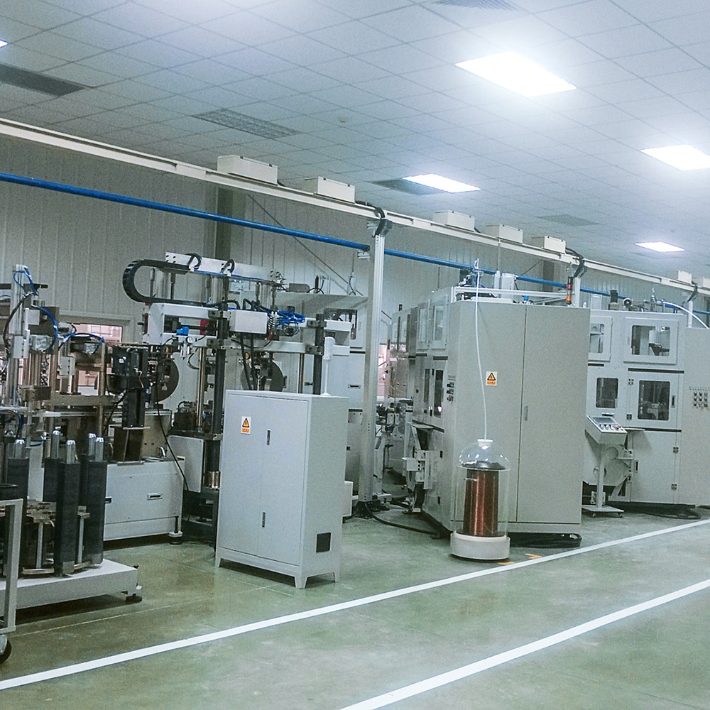 適合空調、冰箱壓縮機、風扇及水泵、洗衣機等感應電機定子的全自動無人化生產線。該線集世界先進的電機定子生產技術于一身,所有元器件采用世界品牌,繞線、下線采用多臺繞下線一體機組成、機器人上下料、整形機采用全伺服驅動、回轉工作臺方式、綁扎機采用四工位布置、帶自動打結功能、整線設備實現無人操作,可以真正做到不停機生產的全自動線,該線可以加工小槽口高槽滿率散片電機定子,13秒的生產節拍,先進的配置是世界性價。